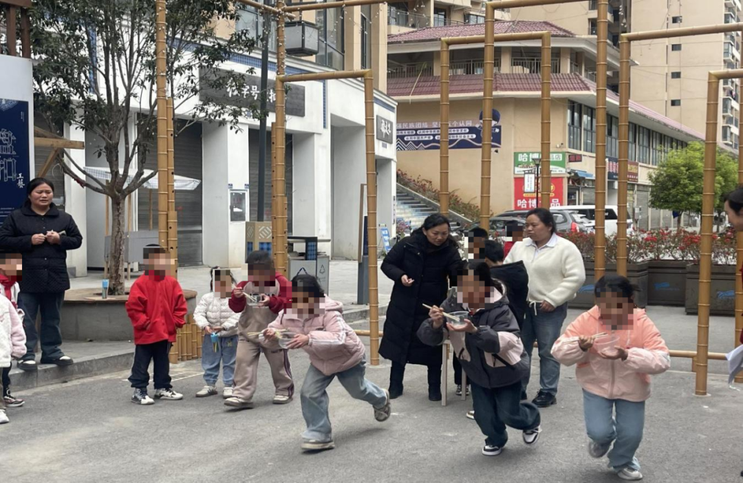 “爱心妈妈”还与孩子两两组合成一队“母子”,一起参与两人三足和夹弹珠游戏,“母子”间笑声不断,加油声此起彼伏,“妈妈”给孩子搽拭汗水,孩子也担心“妈妈”玩两人三足时摔倒而进行搀扶,这种有效的亲子陪伴弥补了孩子情感的缺失,让孩子们感受到了来自“妈妈”的关爱,来自社会的关爱。潘顺顺(化名)说:“我妈妈在餐馆打工,从来没有陪我玩游戏、读书,她下班回家都很累,也不想我去烦她,今天和梁云云(化名)妈妈一起读书做游戏,我很开心。