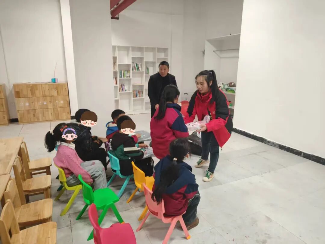 “爱心妈妈”们把装有各类文具的崭新的书包发放到孩子们手中。每个书包都承载着“爱心妈妈”对孩子们的关心和关爱。