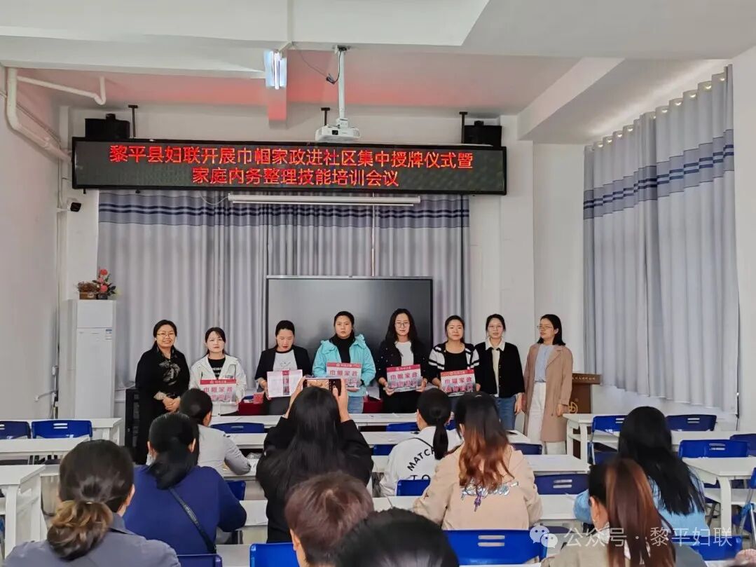 会上县妇联副主席对在社区党群服务中心设立巾帼家政服务窗口工作做了安排部署,并向24个社区负责人授予“巾帼家政服务窗口”工作牌。
