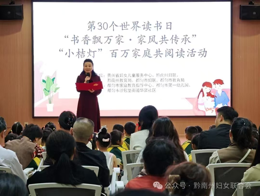 在贵州省妇女儿童服务中心指导下,黔南州妇联、黔南州教育局携手都匀市妇联、市教育局、市家庭教育指导中心在黔南州妇女儿童活动中心举办“书香飘万家家风共传承”“小桔灯”百万家庭共阅读活动。现场,孩子们通过诗歌朗诵、经典故事表演的方式让中华美德文化的种子在童声雅韵中悄然生根,赢得现场家庭阵阵掌声。