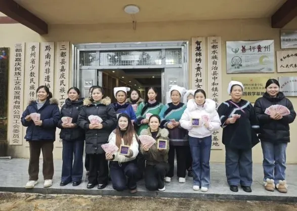 据了解,“天才妈妈”是中国妇女发展基金会打造的公益品牌项目,旨在赋能困境女性发展、助力非遗文化新生,绽放乡村振兴“她力量”。2023年,“天才妈妈·梦想工坊”正式落地三都县,项目聚焦非遗传承与妇女居家就业两大核心,通过阵地建设、技能培训、产品研发创新等举措,推动传统马尾绣产品迭代升级,全面提升市场竞争力,为绣娘就业增收搭建了坚实平台。截至目前,该工坊已辐射带动周边500余名农村马尾绣艺人和妇女参与生产加工。