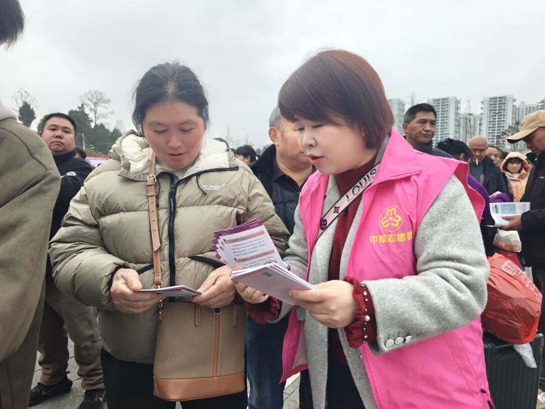 活动现场,县妇联组织巾帼志愿者为返岗妇女提供服务,送上出行提醒和新春祝福,叮嘱大家注意旅途安全,在外遵守法律法规、安心工作,兼顾家庭与事业。