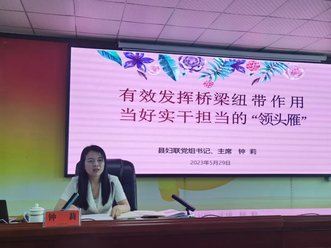 开班式上,县妇联党组书记、主席钟莉以《有效发挥桥梁纽带作用 当好实干担当的“领头雁”》为题,从妇联工作职能、妇联干部职责以及妇联工作怎么干等方面进行授课,围绕深入贯彻落实党的二十大精神、省妇女第十二次代表大会和市妇女第三次代表大会精神,要求基层妇联干部强化学习意识,切实增强政治自觉和理论自觉,做好妇女群众的“领头雁”;强化责任意识,切实增强思想自觉和行动自觉,做好妇女群众的“主心骨”;强化服务意识,坚持联系服务妇女的工作生命线,做好妇女群众的“贴心人”。要锤炼忠诚干净担当的高素质干部队伍,不断加强基层妇联组织、干部队伍建设和基层妇联执委队伍建设,将妇联组织建设得更加充满活力、更加坚强有力。