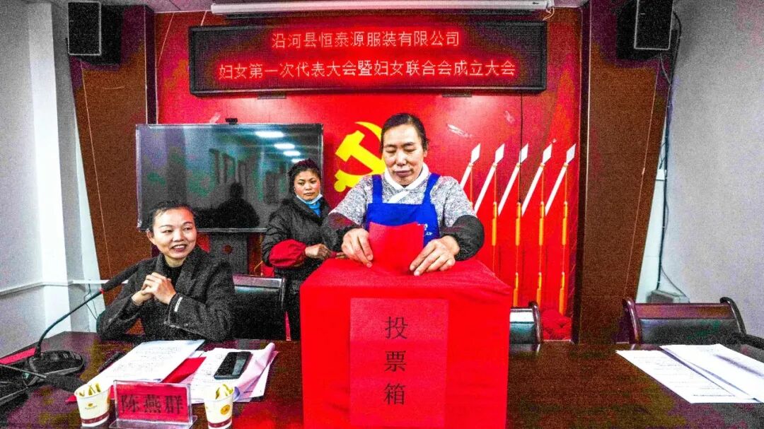 随后,县妇联提名主席任华霞为恒泰源服装有限公司妇联揭牌。