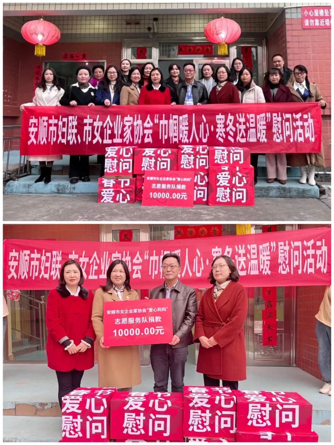 春节将至,岁寒情暖。2025年1月22日,安顺市妇联、安顺市女企业家协会到市儿童福利院开展“巾帼暖人心·寒冬送温暖”慰问孤残儿童活动。市妇联党组成员、副主席舒丹,市民政局党组成员、副局长阳立平,市女企业家协会会长何兰及理事会成员参加慰问。