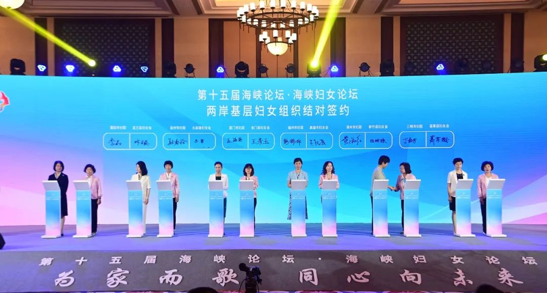 两岸专家学者围绕“源”“家”“福”主题做主旨演讲,讲述了两岸同胞血缘相亲、文脉相承的动人故事;12对海峡两岸家庭和妇女组织结对认亲、合作签约,海峡两岸及港澳姐妹共同启动“姐妹情一家亲·同心向未来”行动,表达了和衷共济,共创未来的美好愿望。