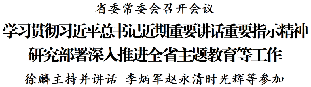 5月24日,省委常委会召开会议,学习贯彻习近平总书记近期重要讲话、重要指示和贺信回信精神,学习贯彻《习近平著作选读》第一卷、第二卷出版座谈会精神,研究部署深入推进全省主题教育等工作。