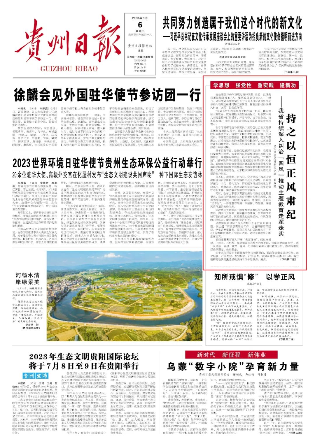 风清则气正,气正则心齐,心齐则事成。自主题教育开展以来,在中央第十三指导组指导下,全省始终把检视整改贯穿主题教育全过程,抓紧抓实整改整治各项重点措施,高标准严要求推动检视问题清单梳理落实落细,确保主题教育不断走深走实。