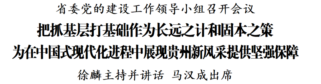 8月4日,省委党的建设工作领导小组召开会议,听取上半年全省基层党建工作情况汇报。省委书记、省委党的建设工作领导小组组长徐麟主持会议并讲话,强调要深入学习贯彻习近平总书记关于党的建设的重要思想,把抓基层打基础作为长远之计和固本之策,以“黔进先锋·贵在行动”为总载体,围绕基层基础“强双基”,推动基层党建高质量发展,为在中国式现代化进程中展现贵州新风采提供坚强保障。