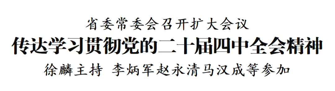 10月24日,省委常委会召开扩大会议,传达学习贯彻党的二十届四中全会精神,对研究我省贯彻落实意见明确要求。