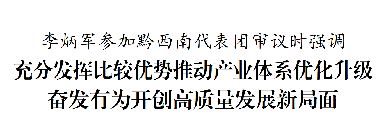 1月28日上午,省委副书记、省长李炳军参加省十四届人大四次会议黔西南代表团审议。他强调,要深入贯彻党的二十届四中全会精神和习近平总书记在贵州考察时的重要讲话精神,充分发挥比较优势,推动产业体系优化升级,奋发有为开创高质量发展新局面。省级领导王思齐、王忠、董家禄、陈鸣明参加。