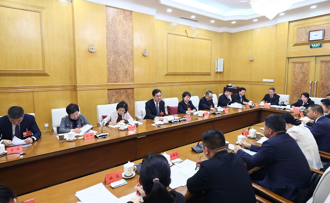詹成付、谭琳、陶长海、吴强、桑维亮、杨永英、石化清、叶赞平、尹恒斌、卢丹、李世瑶、李利、李英、肖立书、宋宝安、张定超、张集智、洪湖鹏、胡永忠、黄勇、廖莎、朱山、杜薇、吴东来、张顺勇、郑伟、查艳、莫富元、栗尼娜、穆嵘坤、万泉、付庆梅、汤越强、杨昌芹、杨凯、肖正强、肖军、邱宁宏、欧阳黔森、周敬余、郑培坤、赵子铱、姜鹏、袁姝、黄兴文、彭丹冰、潘大福、鞠华国等代表作了发言。大家一致表示,“两高”报告自觉把牢正确政治方向,坚持政治效果、法律效果、社会效果有机统一,总结成绩全面客观、亮点纷呈,分析形势直面问题、深刻透彻,部署工作科学务实、措施管用,必将指引推动法检工作高质量发展不断取得新进展新成效。