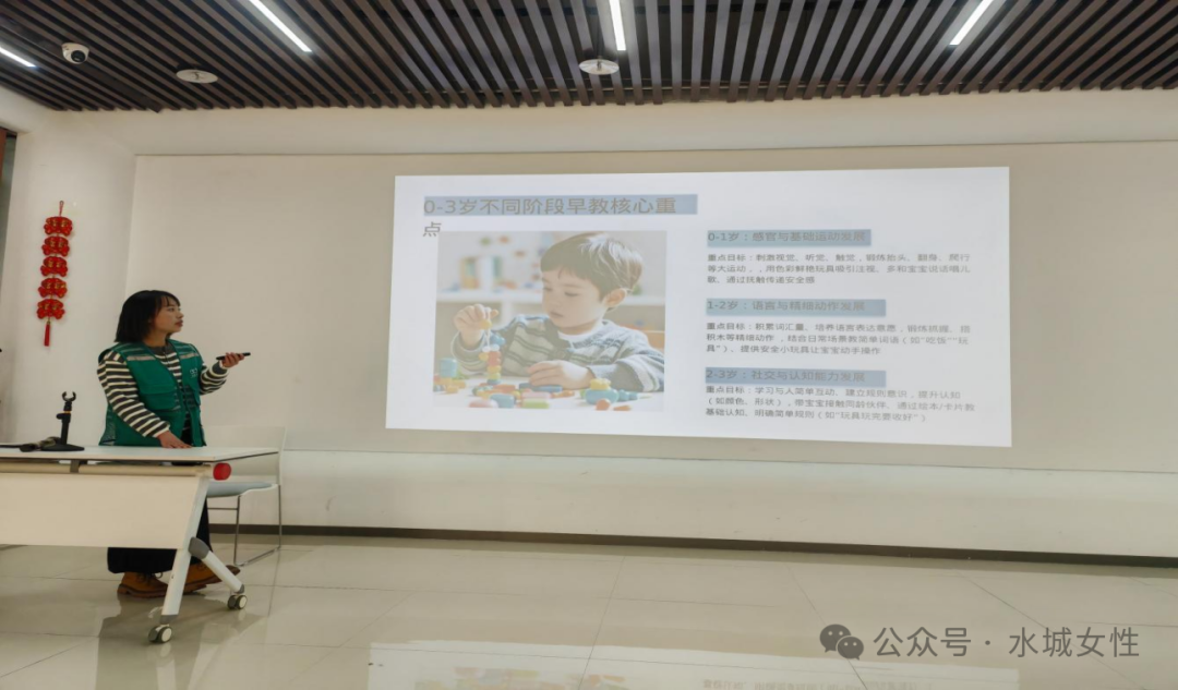 为帮助家长将理论知识转化为实践,老师分享了系列家庭游戏指南。包括通过“追视红球”锻炼视觉追踪能力,借助“搭积木”培养精细动作,利用“颜色分类”提升认知能力等。这些方法简单易行,便于家长在日常生活中开展,让科学育儿理念真正融入亲子陪伴。