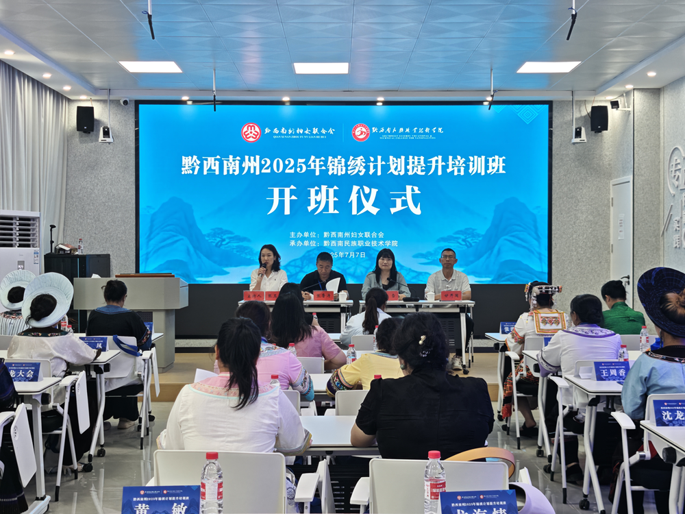 7月7日,黔西南州2025年“锦绣计划”提升培训班在兴义开班,来自全州的30名锦绣计划女性产业带头人汇聚于此,精进技艺、共谋产业发展。