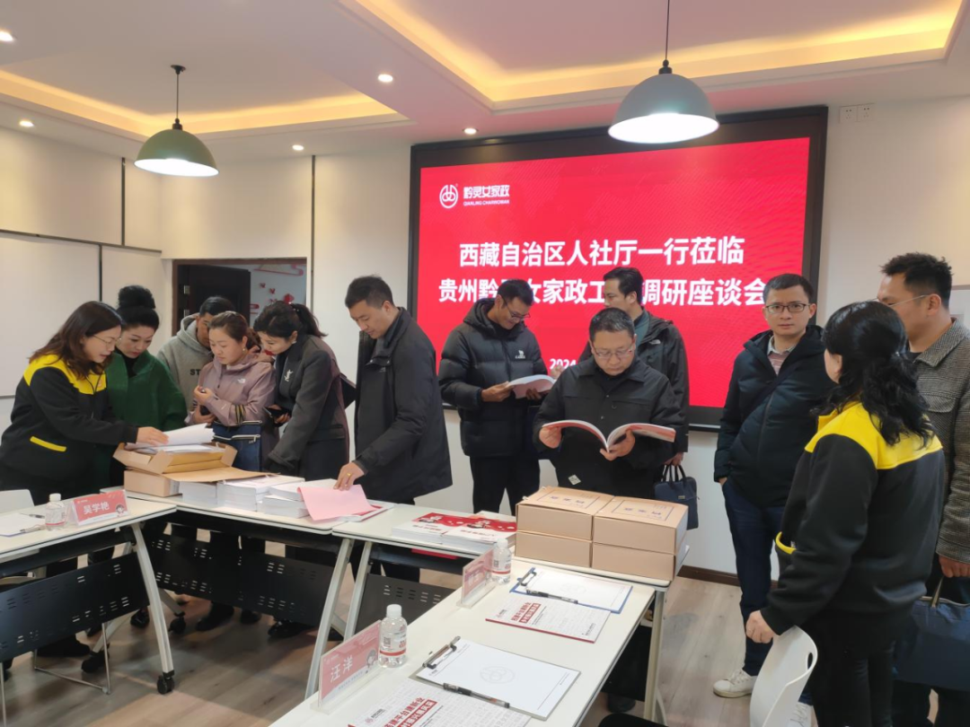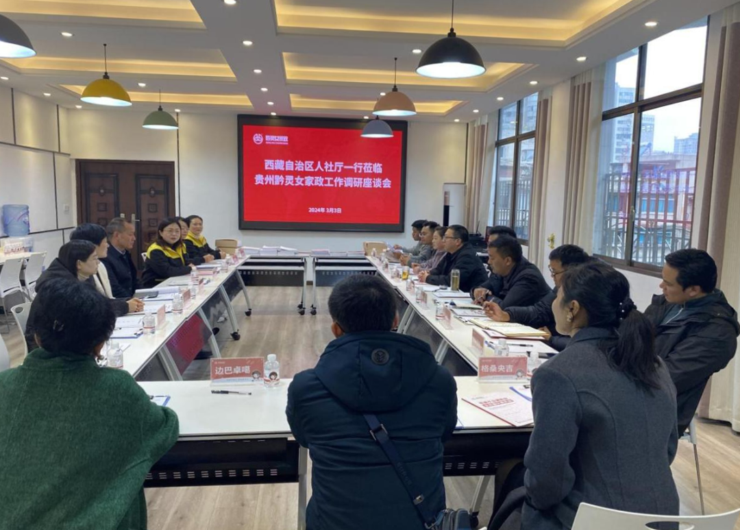 2024年3月3日上午,西藏自治区人社厅就业服务中心技能人才评价管理处处长李文学、副处长洛桑西绕等一行十一人,贵州省职业技能鉴定考评指导中心二级调研员刘志勇、四级调研员罗亚梅、韩锋、贵阳市就业职业技能开发中心鉴定部副主任周小兰到贵州黔灵女开展调研。贵州黔灵女家政总经理郭毅、考评站负责人郭群、考务人员吴学艳,就专项能力考核工作经验做法进行深入交流。
