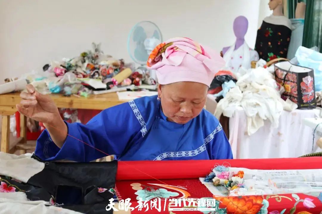 “农忙的时候,利用下雨天和晚上的时间绣,一个月有1000多元的收入。等到冬天来了,天天绣,一个月可以拿到3000多元呢。”绣娘朱兰计说。